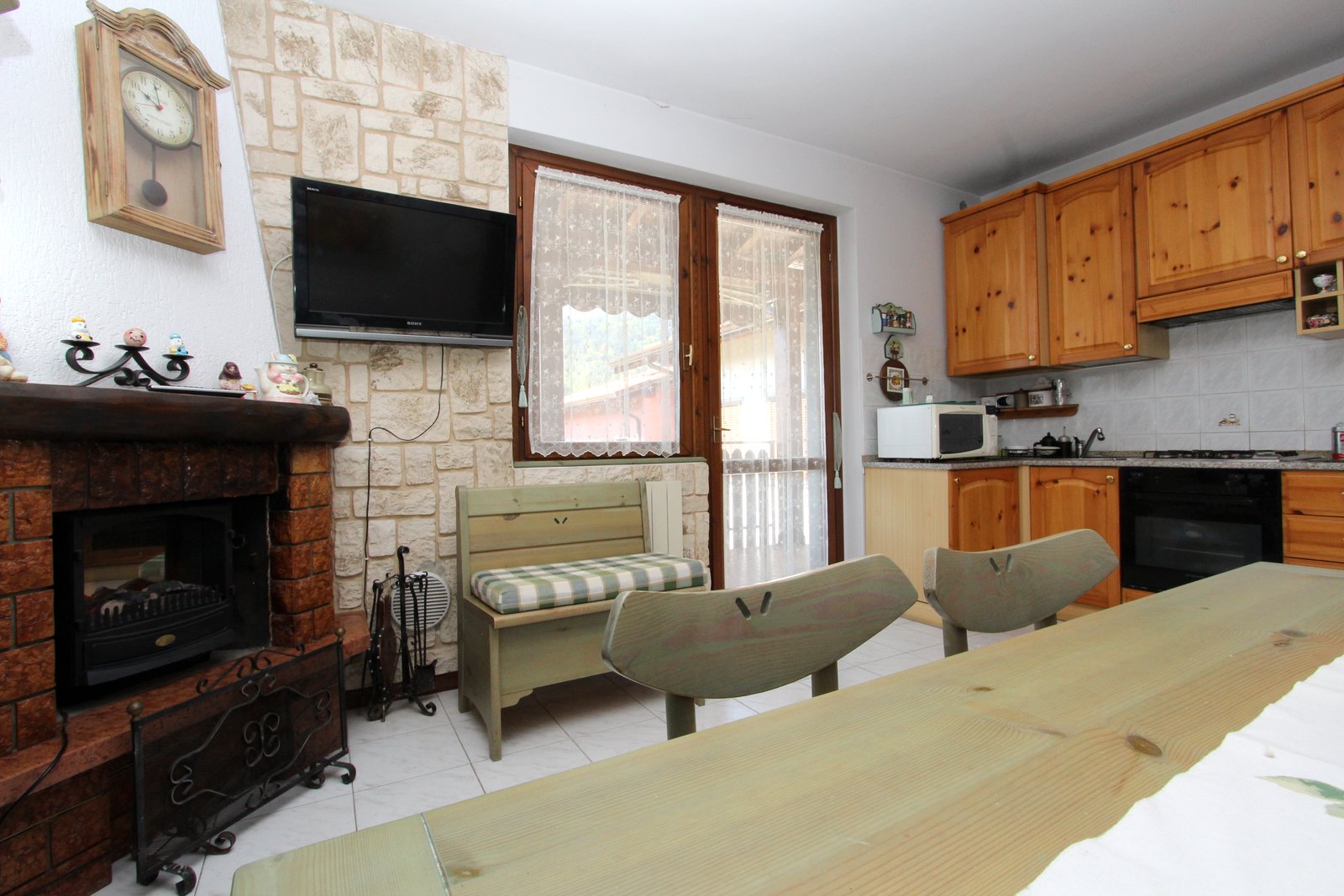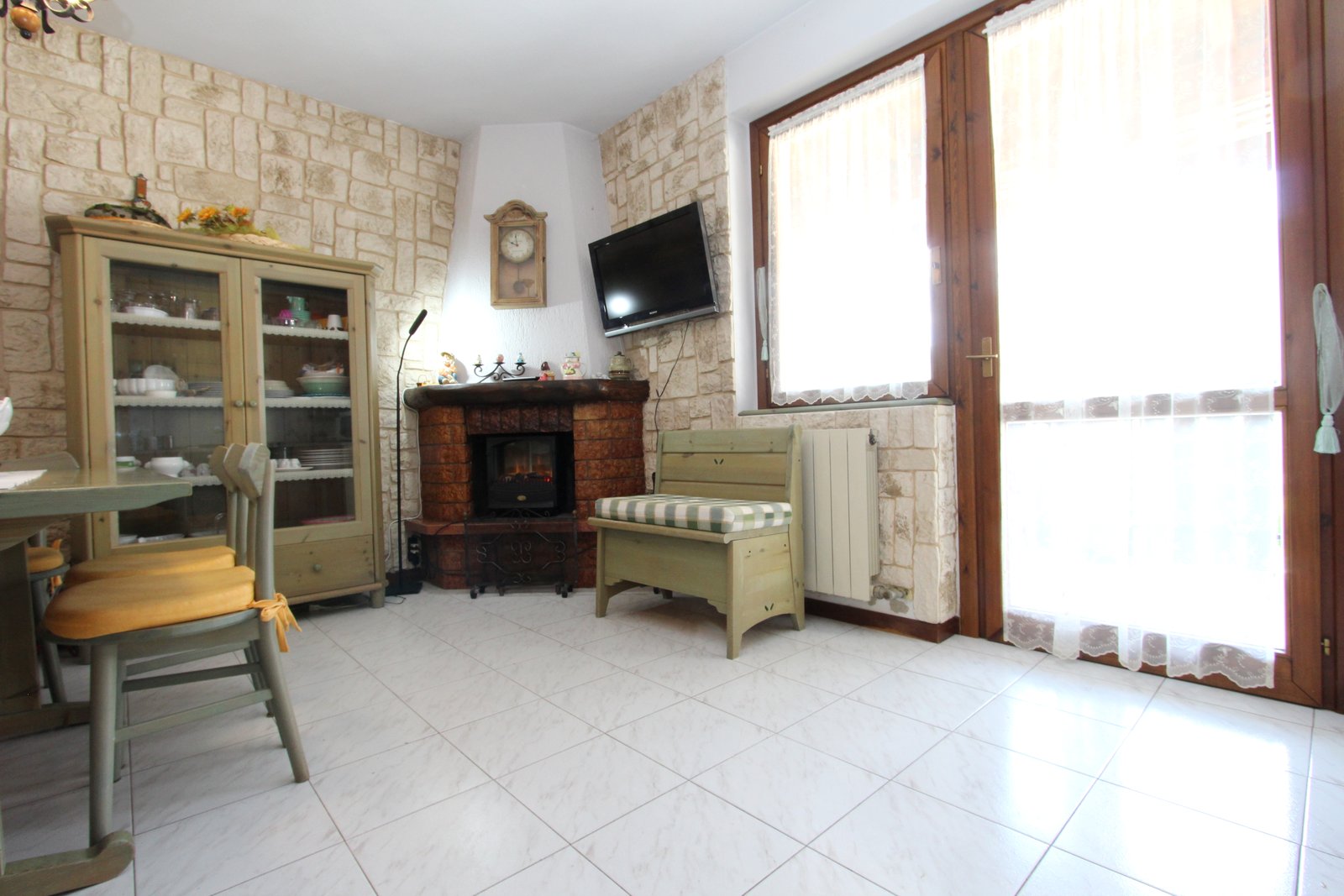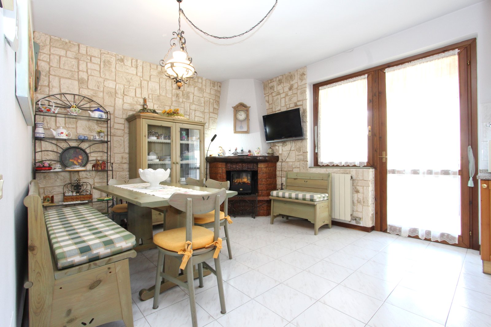 • Luminoso soggiorno con angolo cottura e suggestivo camino