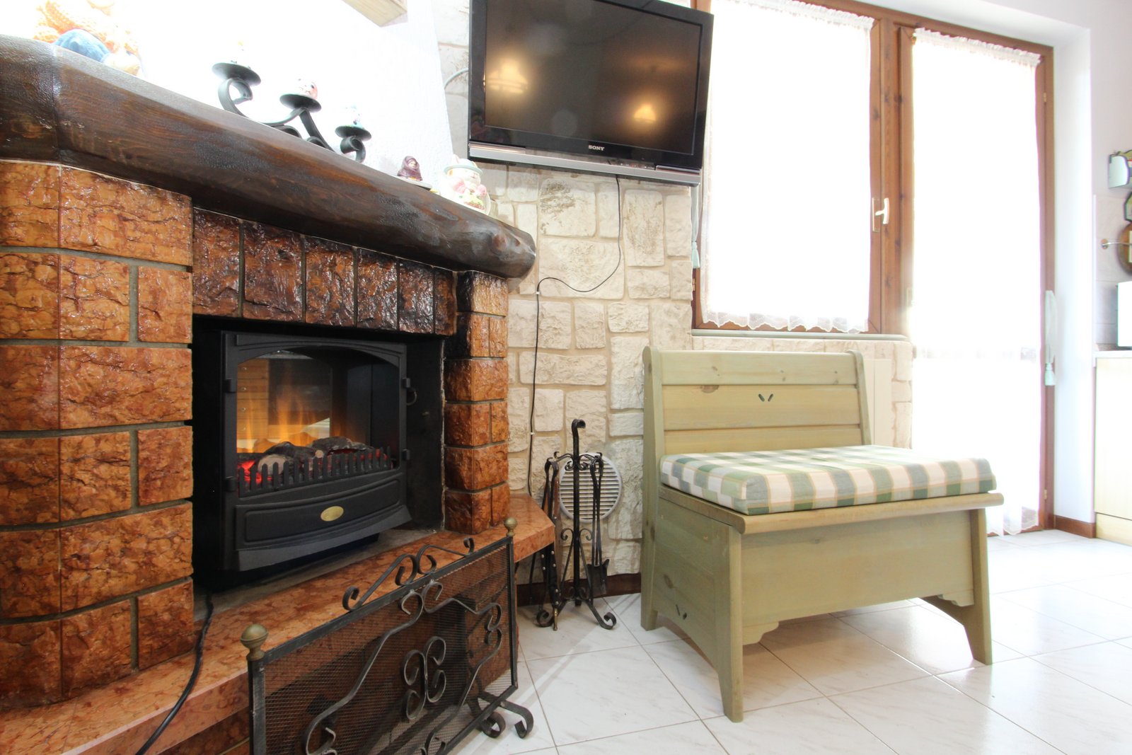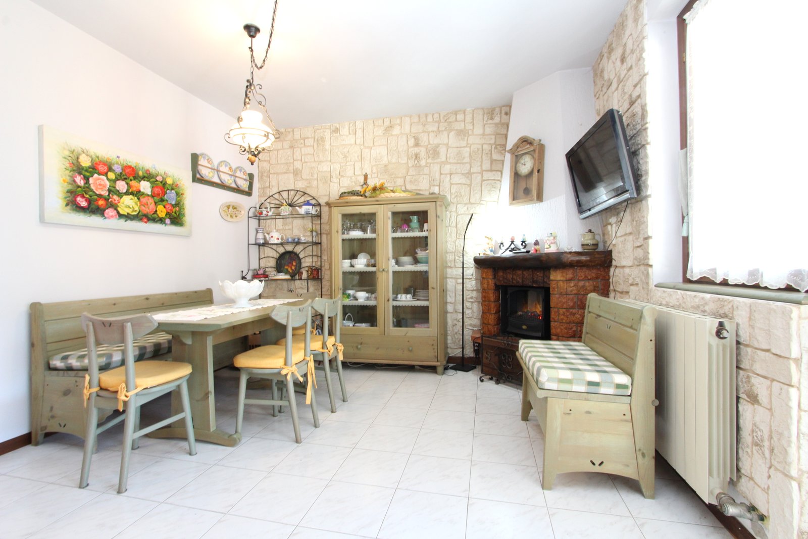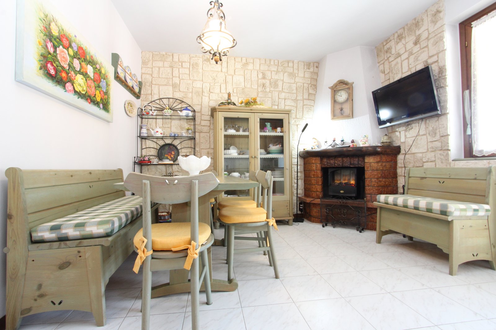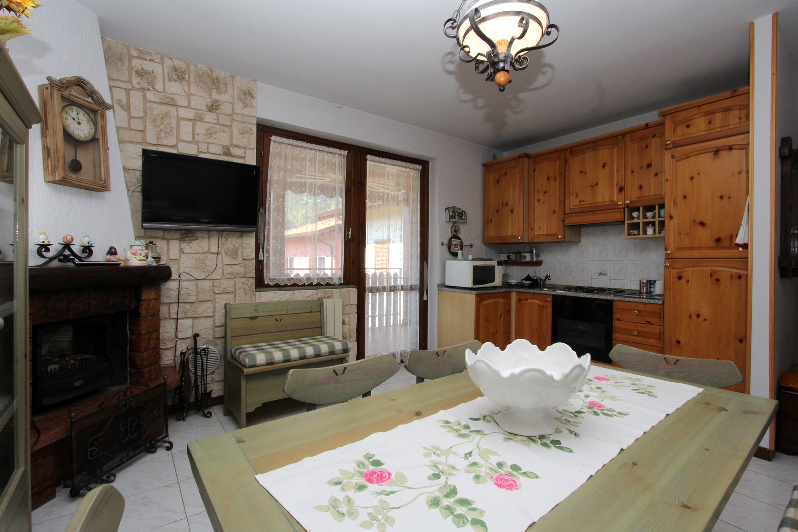 • Luminoso soggiorno con angolo cottura e suggestivo camino